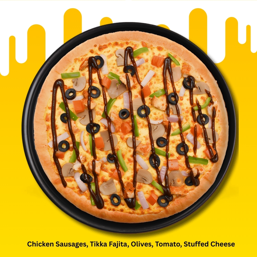 Chicken Sausages, Tikka Fajita, Olives, Tomato, Stuffed Cheese