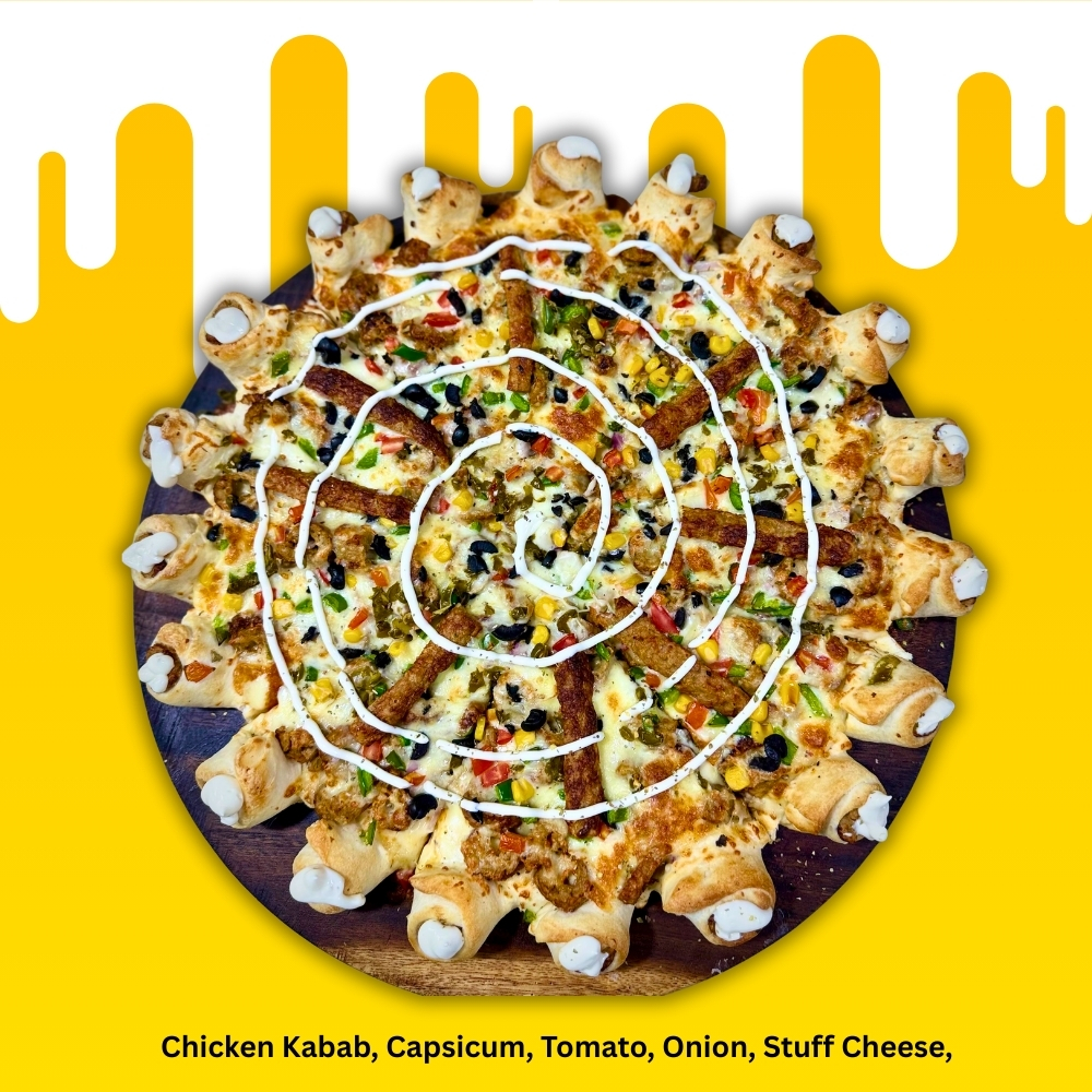 Chicken Kabab, Capsicum, Tomato, Onion, Stuff Cheese.